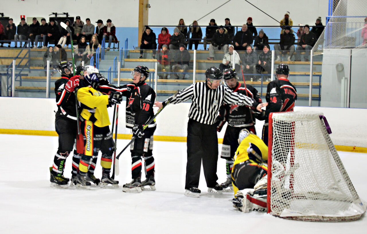 Oulaisten Cobrien ja Pyhäjärven Pohdin välisessä kamppailussa nähtiin tiukka vääntö sarjapisteistä. Kuva: Matti Kalliokoski