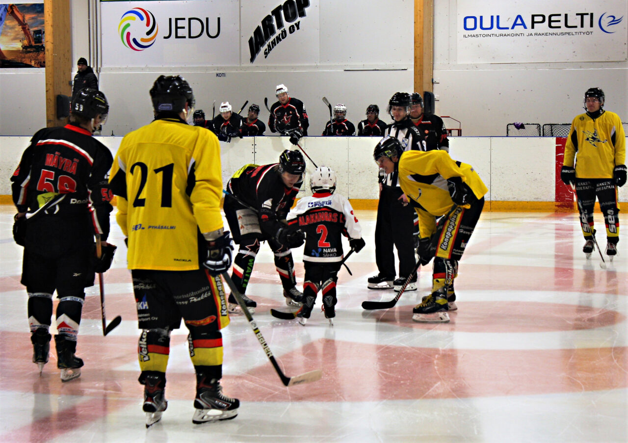 Ottelun avauskiekon pudotti Cobrien U8-joukkueessa pelaava seuran nuorin pelaaja Iivo Alakangas.