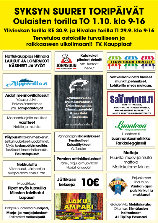 Ilmoitus 22.9.2020 Takaisin Jutut -sivulle Lue seuraavaksi Oulaisten uusittu paloasema esittäytyi 31.8.2022 Kansi auki! -tapahtuma keräsi Jokilaaksojen pianistit yhteen 8.4.2022 MTK:n Juha Marttila: Tuottajahinnat nousevat 6.4.2022 Oulaistelaislähtöinen Jyri Rantala vaihtaa Suposta valtioneuvoston viestintäosastolle 28.1.2022 Tilaa uutiskirje Sähköpostiosoite Tilaa Leave this field empty if you're human: