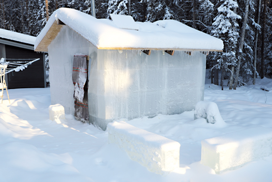 Jääsaunan lämmitys vie 2,5 tuntia. Kun kyse on tämänkaltaisesta saunasta, on selvää, että saunan rakenteet sulavat jonkin verran joka saunomiskerran jälkeen. Janne Taanila tunnustaakin, että jääsaunan ylläpito vaatii kovaa työtä, jotta sen käyttöikä olisi mahdollisimman pitkä.