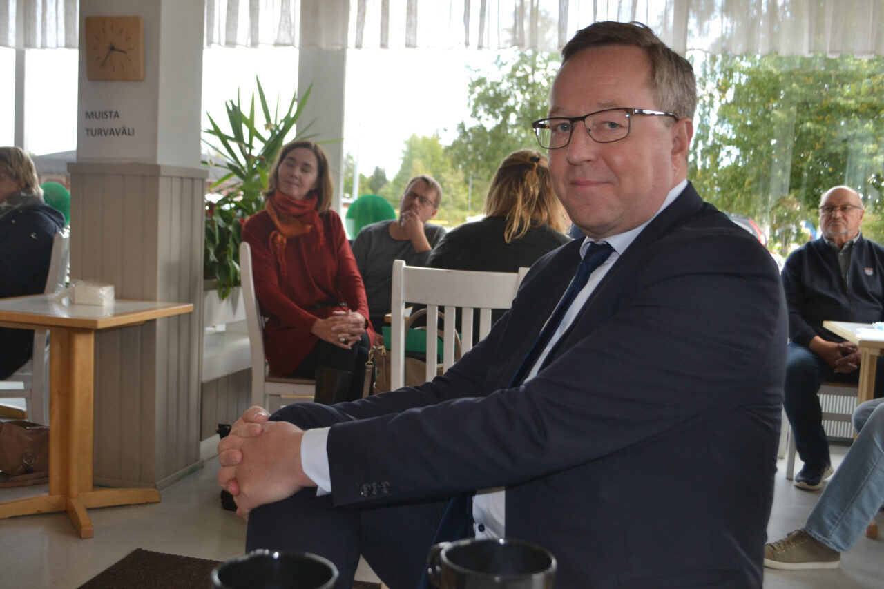 ”Järkivihreä” elinkeinoministeri Mika Lintila ja taustalla oleva kansanedustaja Hanna-Leena Mattila kuuntelivat keskustan kentän ääntä Oulaisissa. Kuva Kaisa Hietala