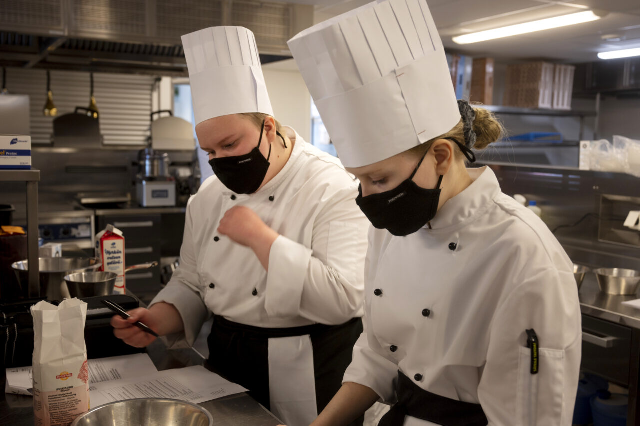 Jedun Haapaveden toimipisteellä kokiksi opiskelevat Niina Kukkurainen (Nivala) ja Natalia Hatula (Haapavesi) saavuttivat hopeamitalin parikilpailuna kisattavasta kokki-lajista. Kuva: Jaani Föhr Skills Finland