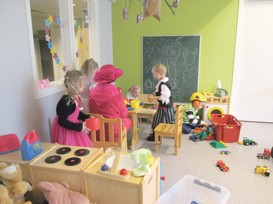 Kahvi ja sämpylät tuoksuvat. Lapset kiirehtivät keittiöön ja tiputtavat kolikon kerhopossuun. Kerhomummut ja ohjaajat tarjoavat sylinsä pienille halukkaille, jotta äidit saavat juoda kahvinsa rauhassa ja vaihtaa toisten äitien kanssa kuulumisia. Vertaistukea tarvitaan ja sitä saadaankin. Osalla lapsista on kiire syödä, sillä he muistavat, että askartelu odottaa kerhotilassa. Tänään askarrellaan lampaita. Toiset malttavat syödä nautinnolla ilman kiirettä. Sitten taas pelit ja leikit jatkuvat. Satuhetkikin löytää paikkansa.