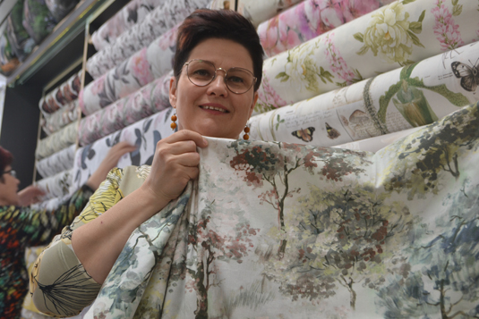 ”Edellisten lisäksi ostan myös muualta kullekin kaudelle trendin mukaisia sisustuskankaita tietyn määrän”.