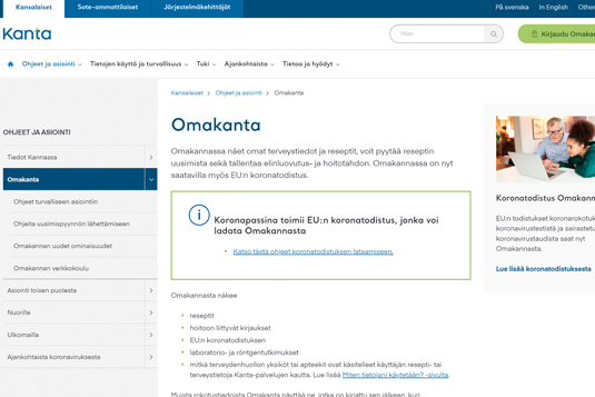 Koronapassin voi ladata sähköisestä omakanta-palvelusta.