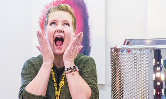”Useissa tauluissa on enkeliaihe. Joissain niistä on hahmoja, joita en edes suunnitellut maalaavani. Ne ovat vähän mystisiä itsellenikin.”