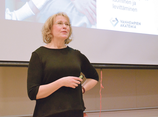 Riitta Alatalon luento keskittyi erityisesti lasten ja nuorten älylaitteiden käyttöön ja pelaamiseen sekä siitä mahdollisesti aiheutuviin ongelmiin.