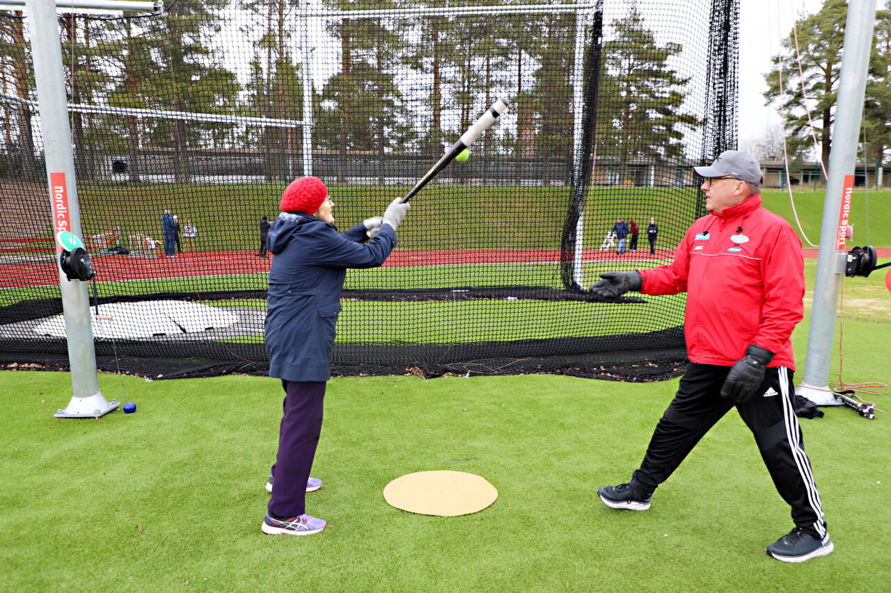 Yksi päivän lajeihin osallistunut oli Eila Laulumaa, joka jysäytti pesäpalloa Sauli Lehtikankaan syötöstä kuin nuorempi pesäpalloilija ikään.