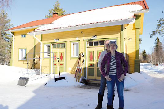 ”Tämä on Marun äidin kotitalo. Ei meillä ollut koskaan tarkoitus muuttaa tänne, mutta oma eläkkeelle jääminen oli tiedossa ja piti alkaa miettiä, että mille sen jälkeen ryhtyisi. Tämä talo oli ollut perikunnan hallussa ja anoppini osti sen perikunnalta sillä ajatuksella, että pystyy kaupittelemaan sitä eteenpäin. Anoppi pisti talon myyntiin, mutta ostajaa ei löytynyt. Lopulta hän tarjosi taloa kunnalle, joka lupautui ostamaan sen tontin hinnalla. Anoppi sanoi meille, että jos kunta ostaa talon, niin se pistetään heti nurin ja tilalle tulee rivitaloja. Eräänä päivänä hän sitten soitti meille ja kysyi, että haluaisimmeko ostaa tämän talon. Voisimme harkita asiaa yön yli. Mietimme Marun kanssa asiaa illalla ja päätimme, ettemme tee ostotarjousta, koska talon kunnostamisessa olisi niin iso työ. Aamulla anoppi soitti uudelleen ja kysyi, että ostammeko talon. Sanoin, että kyllä me ostamme, vaikka illalla olimme vaimoni kanssa päättäneet toisin”, nauraa Esa Pikkumäki.