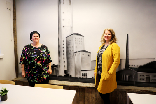 ”Kun tulin tähän tilaan ensimmäistä kertaa, oli seinällä virallisia valokuvia kaivoksesta. Sain heti idean, että tuollainen kuva täytyy saada tähän seinällekin”, kertoo Tiina Ruokamo.