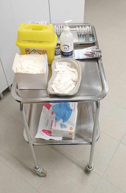 Rattailla kulkevaa kärryä vedetään ruokintakäytävällä ja kärrystä ruiskutetaan letkun kautta valmis juoma kullekin vasikalle.
