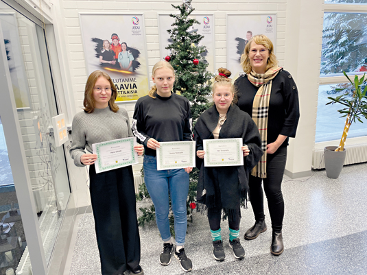 Molemmat opiskelijaryhmät saivat palkintostipendin, jonka myönsi yrittäjäyhdistys ja lukio.
