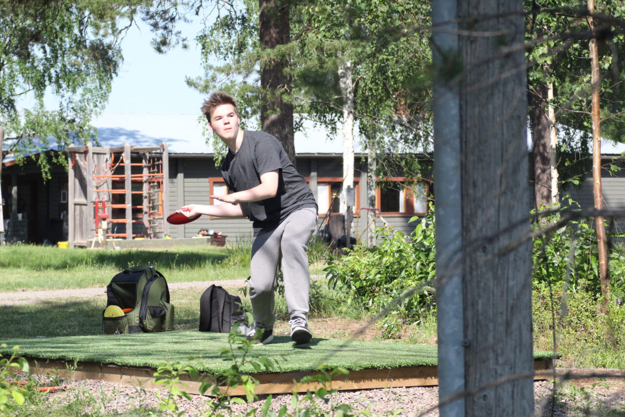 Honkamajan maastoissa voi pelasta muun muassa frisbeegolfia. Tässä Veeti Saarelan tyylinäyte. Arkistokuva