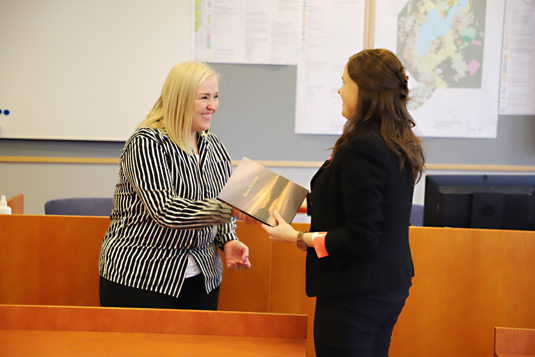 Hymy oli herkässä, kun Oulaisten kaupunginhallituksen puheenjohtaja Marjut Lehtonen (kesk.) ojensi oululaiselle kansanedustajalle Mari-Leena Talvitielle (kok.) Minun Oulainen -kirjan lahjaksi vierailusta Oulaisissa maanantaina. Lukeminen olikin tarpeen, sillä Talvitie kertoi matkustavansa takaisin Oulun seudulle bussin kyydissä. Kempeleessä oli edessä seuraava tilaisuus samana iltana.