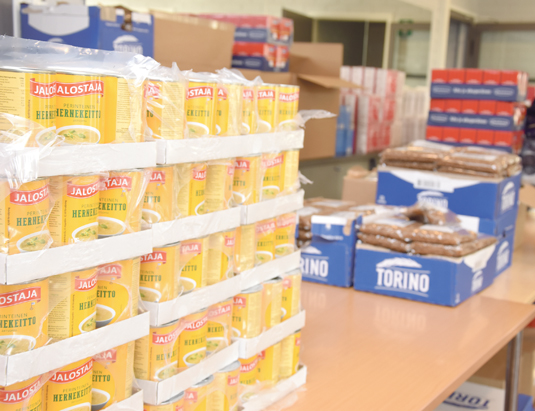 Seurakuntakodilla ihmisten kasseihin löysi tiensä muun muassa herne- ja lihakeittosäilykkeet, jauhot, hapankorput ja puurohiutaleet.