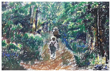 Valokuvaajasta kuvataiteilijaksi ja taidegraafikoksi siirtynyt taiteilija on yhdistänyt osassa teoksissaan mielenkiintoisesti sekä valokuvauksen että pastelliliitu-tekniikan. Mustavalkoinen, taiteilijan omista lapsistaan vuonna 1973 ottama valokuva herää henkiin ihan eritavalla saatuaan värikkään pastellihunnun ylleen, välittäen katsojalle jopa sadunomaisen tunnelman ja vieden retkelle lapsuusmuistoihin.