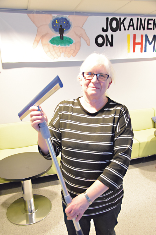 ”Kerhoja on täällä joskus kaksikin samalle päivälle, ja silloin käyn aina kerhojen välissä siivoamassa”.