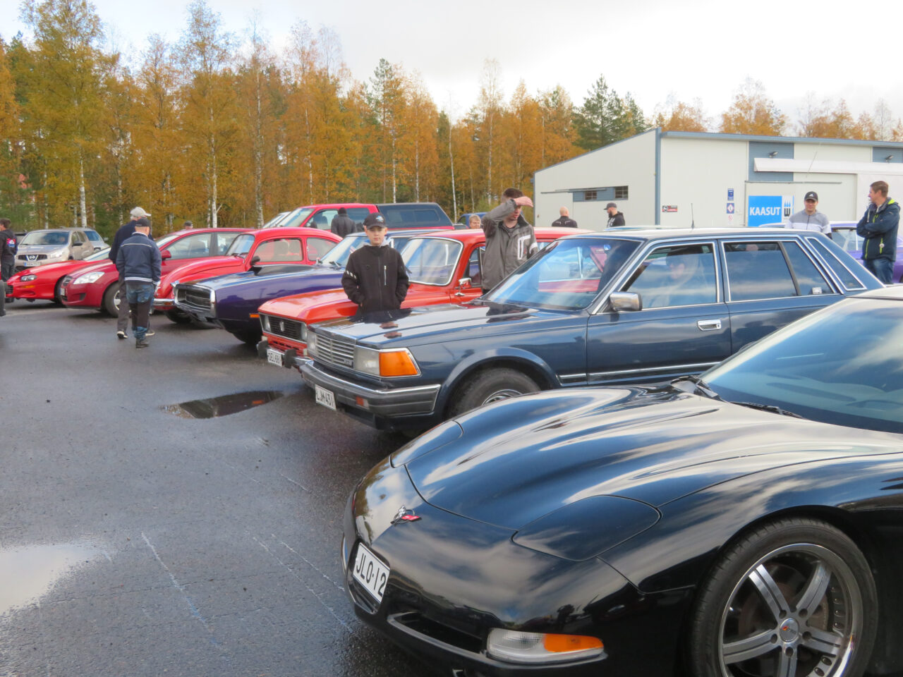 Ensimmäistä kertaa järjestetty Syyscruising-tapahtuma keräsi Oulaisten Nesteen pihalle noin 60 autokuntaa. Kuva: Sirpa Pietarila