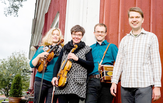 Kaustislainen kansanmusiikkiyhtye Tallari esiintyy Oulaisissa tiistaina Juho Oksan koululla.