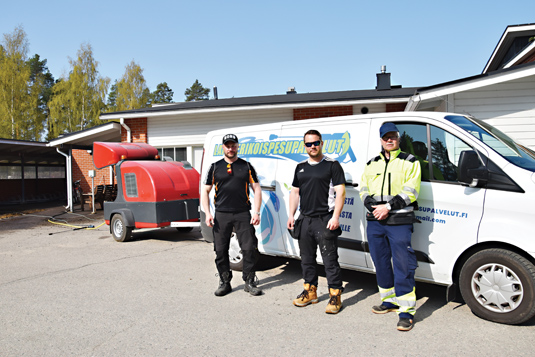 ”Koneesta tulevan höyryn lämpötila nousee välillä 160 asteeseen, joten kokemattoman käyttäjän käsissä se voisi aiheuttaa vahinkoa. Yrityksemme tarkoituksena on lisätä konekantaa seuraavien vuosien aikana ja rekrytä lisää työvoimaa. Pesutöiden lisäksi me pyöritämme myös maalauspalvelua”, kertoo Jari-Pekka Tuulas.