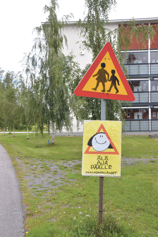 ”Kaikista tärkein ohje on nopeuden alentaminen niin hiljaiseksi, että vähän hävettää, silloin kun ajetaan lähellä koulua, koulun alkamisen tai päättymisen aikana”.