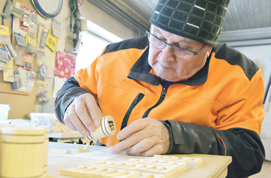 ”Tämä on varsin kimuranttia hommaa. Raudan pitää olla juuri sopivan lämmin, jotta teksti painautuu puuhun kunnolla”, tietää Reijo Grekula.