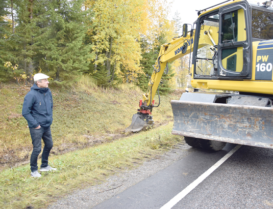 ”Tämä johtuu siitä, että aikaisemmista kaapeleiden sijoittelusta johtuen joudumme tekemään esiaurausta, sillä kaivinkoneella ei riitä voima kauas ojan pohjalle.”