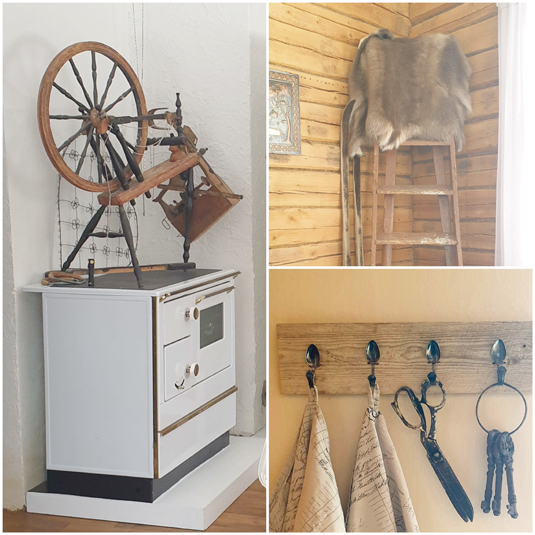 Eristeiden joukosta löytyneitä sota-aikaisia sanomalehtiä hän on suoristanut ja laittanut kehyksiin tauluksi. Muutenkin talossa on haluttu säilyttää mahdollisimman paljon vanhaa. Huonekaluja ja astioita on hankittu kierrätyksestä, ja niitä on myös löytynyt talon vintiltä sekä vanhasta navetasta. Sisustuksessa on käytetty mm. raakalautaa seinäpaneelina ja kierrätettyä lautaa kattolistoina. Kekseliäisyydellä, viitseliäisyydellä ja kierrätyksellä rakennetut ratkaisut eivät välttämättä maksa rahaa.