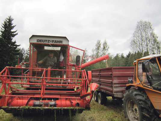 ”Valtateidenkin varsilla näkee vielä puimattomia viljapeltoja ja siitä tietää, että pikkuteiden varrella niitä on vielä paljon enemmän. Mitä pitemmälle syksy etenee, sitä pitempään viipyy aamukaste pelloilla ja sitä nopeammin iltakaste laskeutuu eli hyvää puintiaikaa päiväsydännä on ajallisesti tosi lyhyt aika, Nikula huomauttaa.